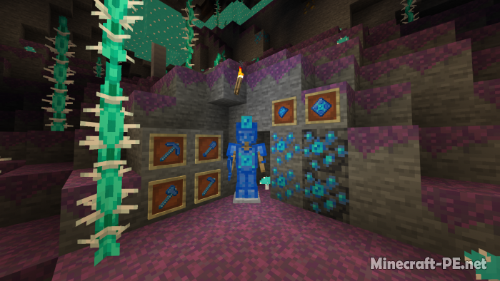 Это дополнение добавляет новые типы пещер, которые вы можете исследовать. Остерегайтесь смертоносных мобов по пути, и вы сможете найти ценные руды, чтобы повысить уровень своего снаряжения!